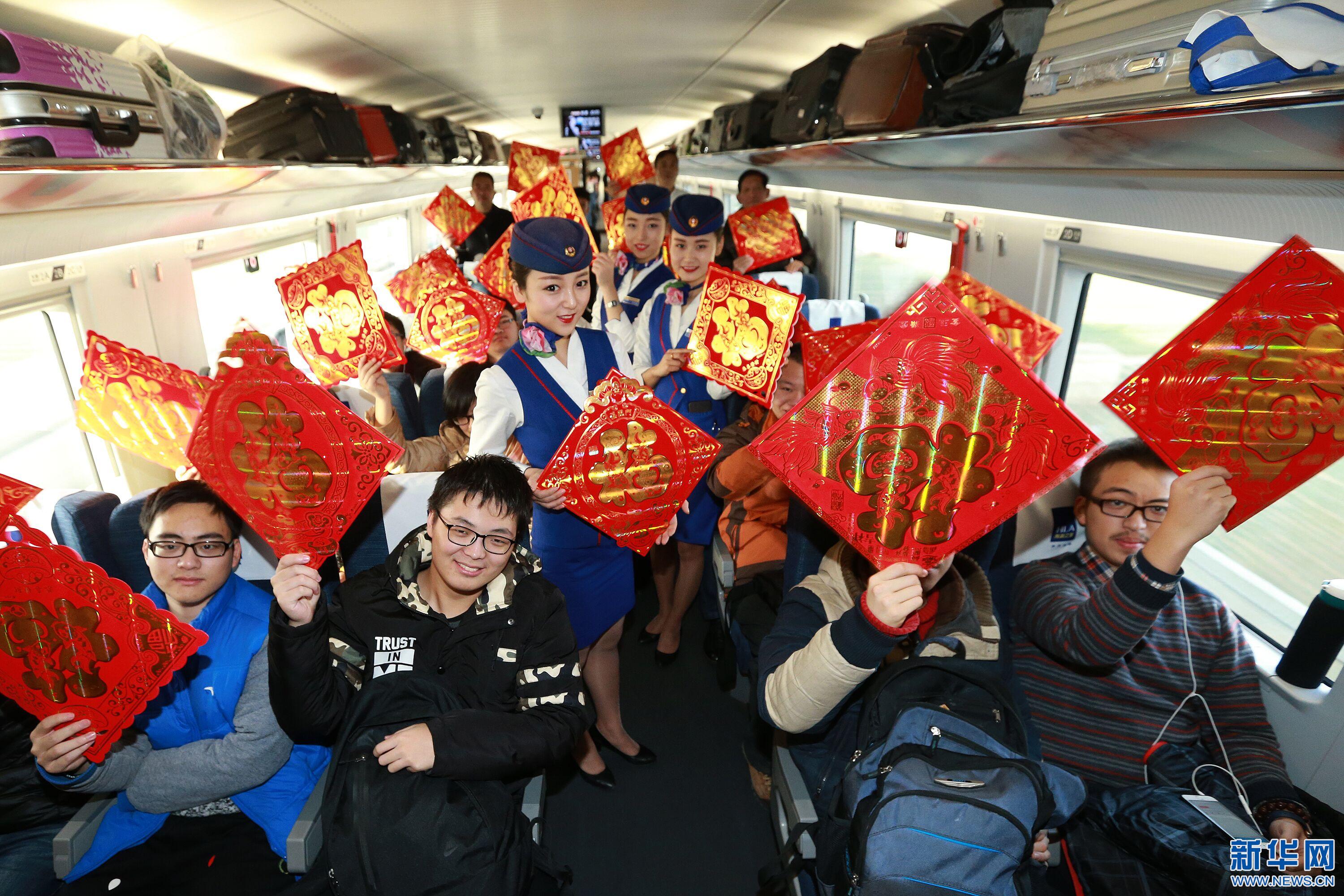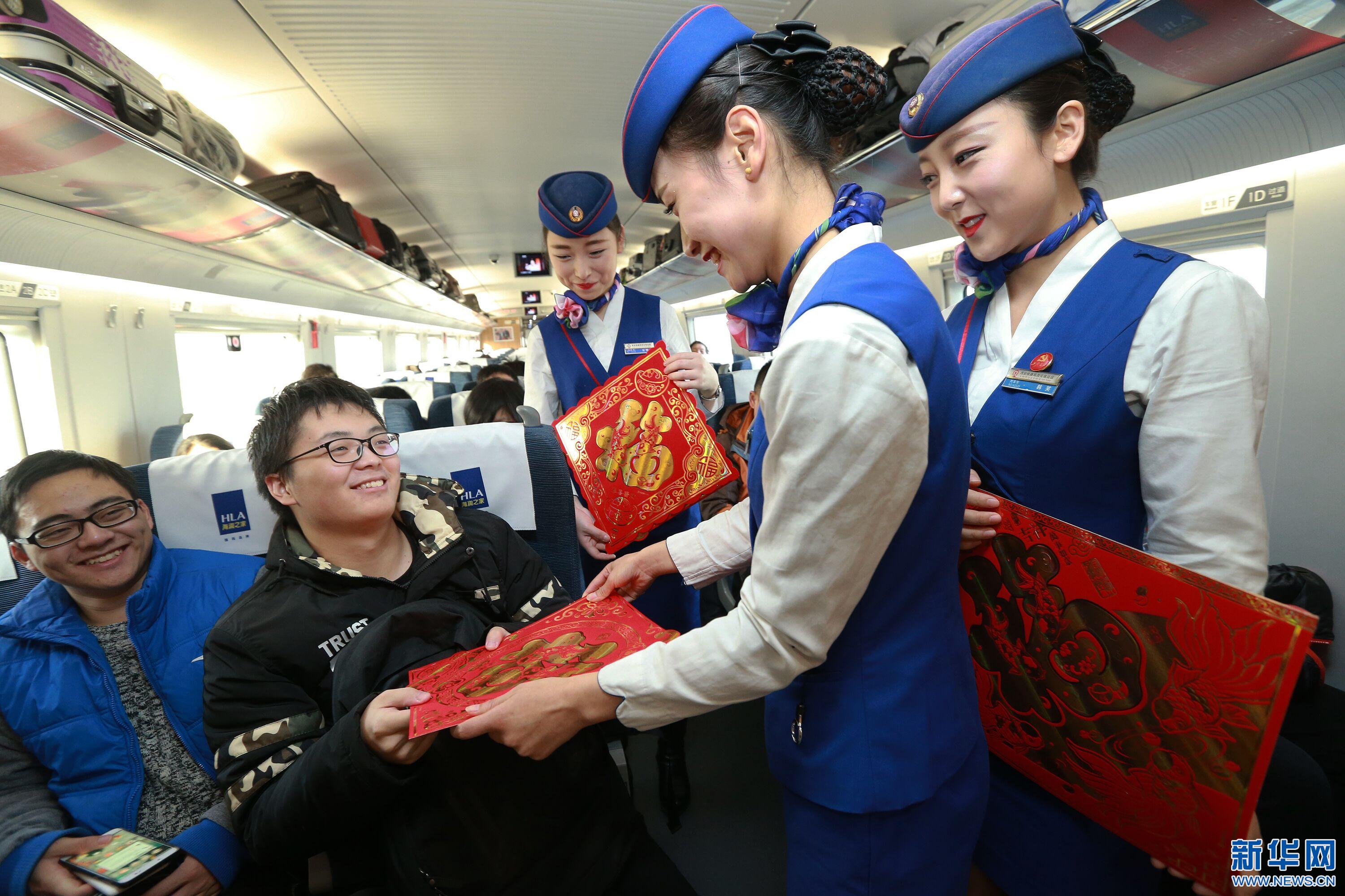 1月12日,春運前一天,西安客運段的乘務(wù)員們?yōu)榱私o車廂營造出暖暖的年味兒,購買了窗花、對聯(lián)、福字等節(jié)日喜慶物品裝飾車廂,讓春運期間回家過年的旅客一邁進車廂便能感受到濃郁的年味氣息。同時,他們還組織開展了“迎新春、送福字”活動,讓旅客帶;丶遥c家人共度新春佳節(jié)。(通訊員 王曙天) -