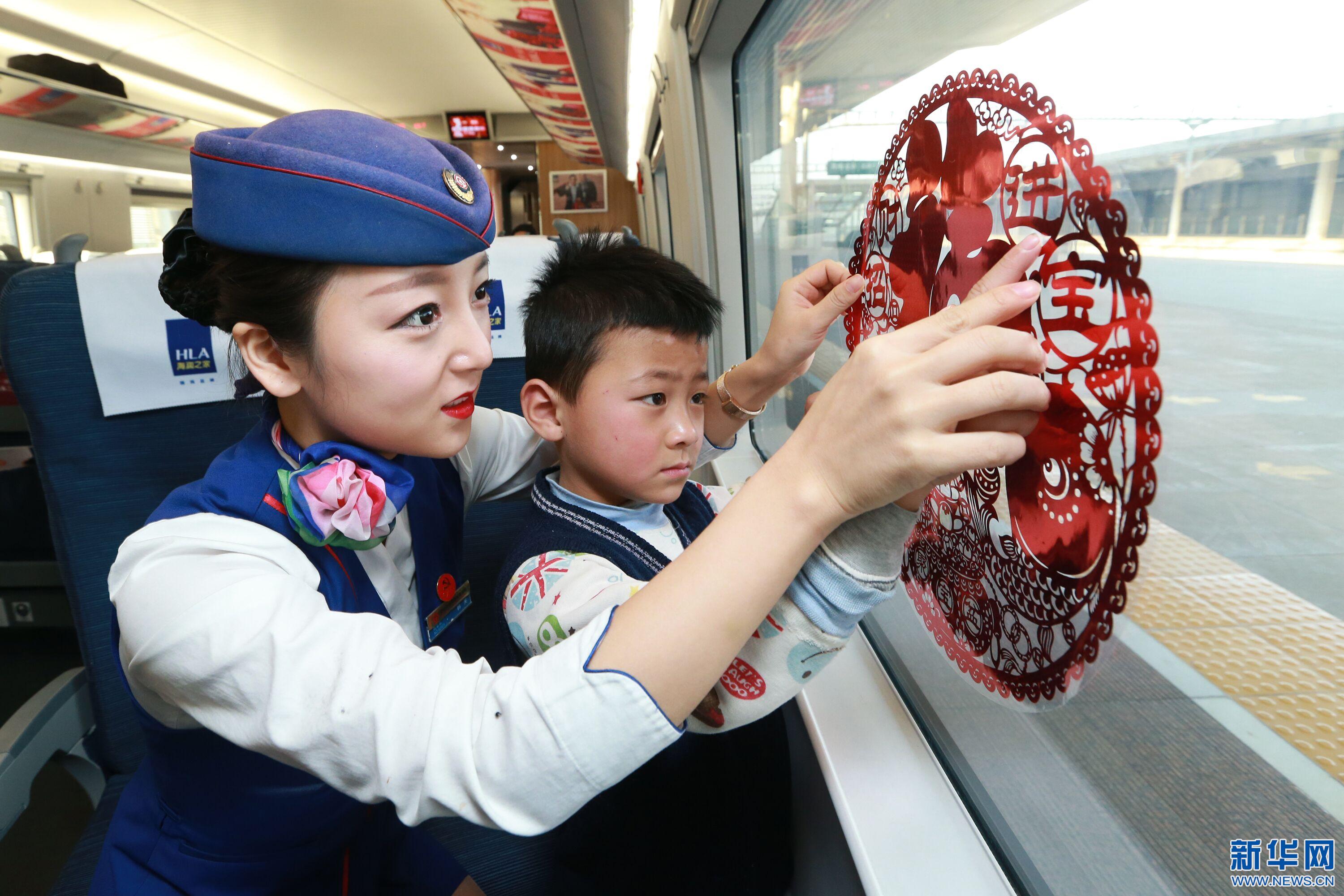 1月12日,春運前一天,西安客運段的乘務(wù)員們?yōu)榱私o車廂營造出暖暖的年味兒,購買了窗花、對聯(lián)、福字等節(jié)日喜慶物品裝飾車廂,讓春運期間回家過年的旅客一邁進車廂便能感受到濃郁的年味氣息。同時,他們還組織開展了“迎新春、送福字”活動,讓旅客帶;丶,與家人共度新春佳節(jié)。(通訊員 王曙天)