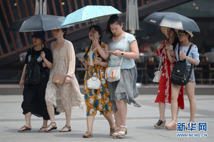 酷暑下的西安市民(7月3日攝)。 陜西持續(xù)高溫天氣,西安、寶雞、安康等多地發(fā)布高溫預(yù)警。據(jù)最新預(yù)報顯示,今明兩天陜西大部分地區(qū)仍以晴到多云為主,關(guān)中南部和陜南東部部分地方還將出現(xiàn)35℃以上的高溫天氣,其中關(guān)中南部最高氣溫可達38℃至40℃,“燒烤”模式持續(xù)。新華社記者 劉瀟 攝 -
