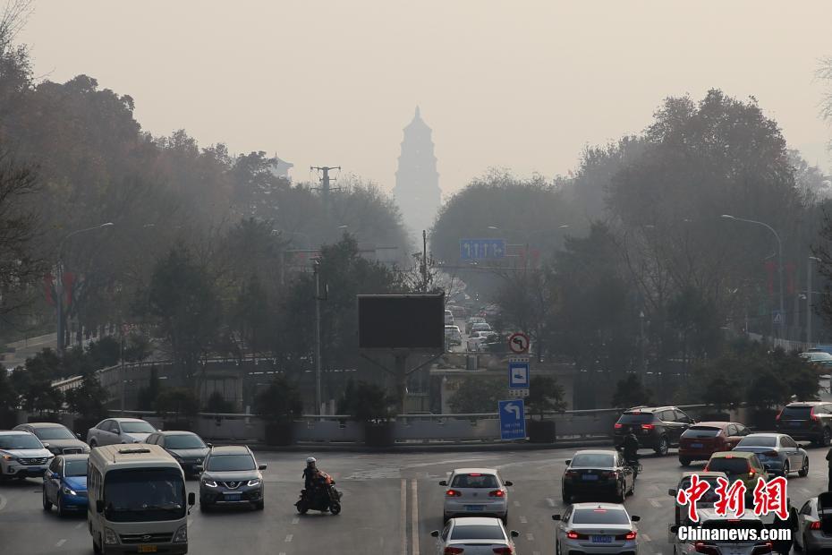 • 12月27日,遠(yuǎn)處的大雁塔被霧霾“包圍”。當(dāng)日,陜西關(guān)中大部出現(xiàn)中度霾、西安重度霾。 中新社記者 張遠(yuǎn) 攝