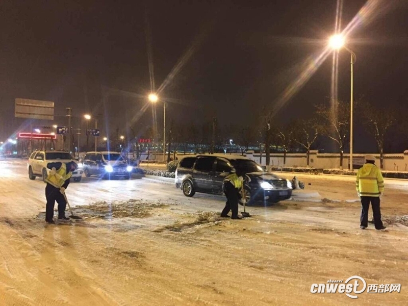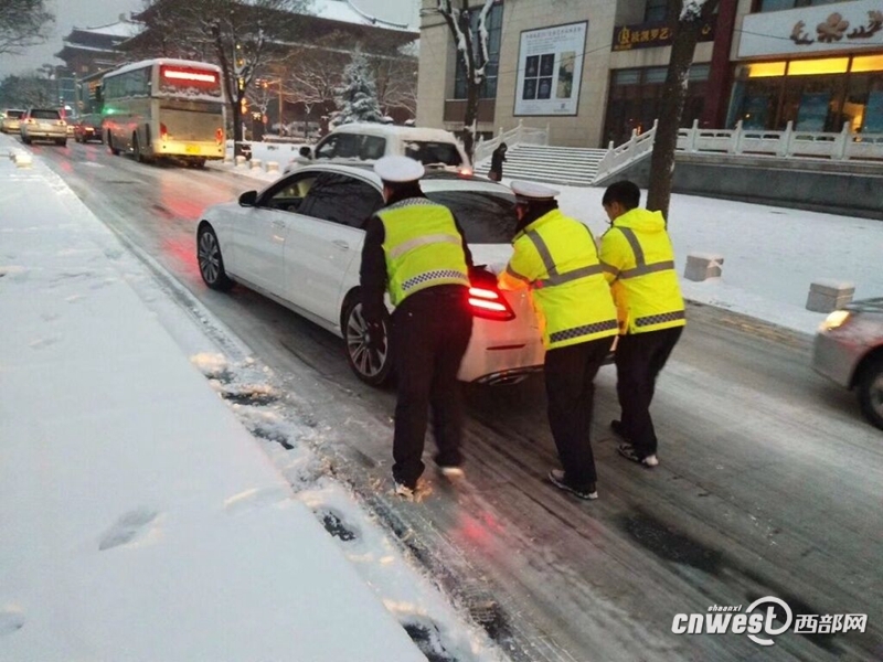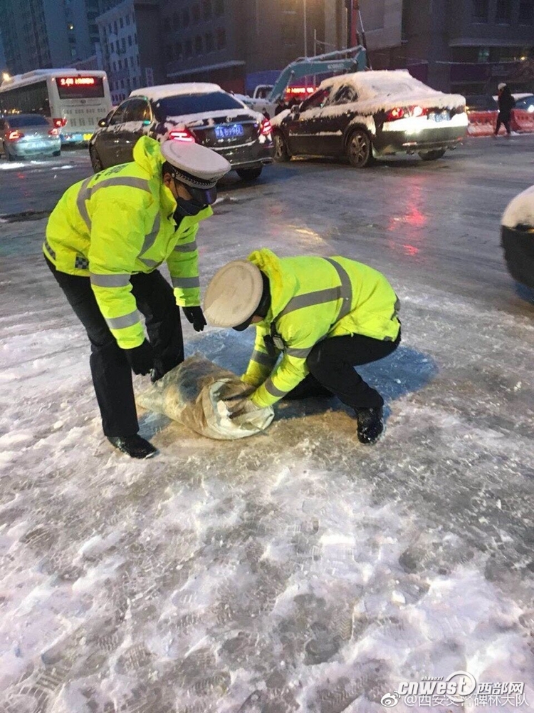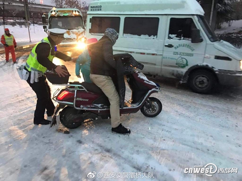 降雪致西安大部分城市道路結(jié)冰,多路段實(shí)施交通管制。