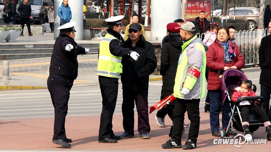 民警向路人指路,并要求其退回到安全島內(nèi)。