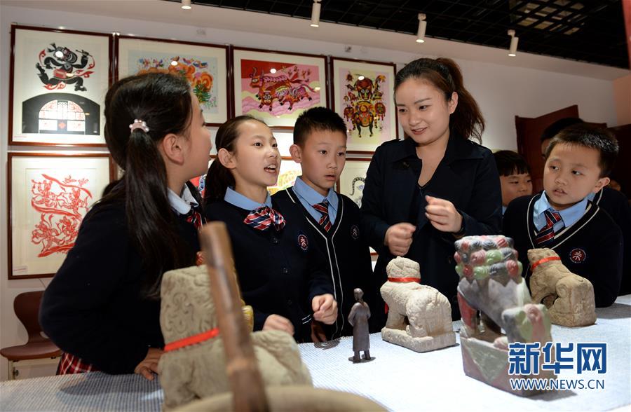 3月15日,西安市曲江第二小學(xué)學(xué)生在博物館課專職教師申珅(左四)的帶領(lǐng)下參觀學(xué)校兒童博物館。 近日,陜西第一家設(shè)立在小學(xué)中的兒童博物館在西安市曲江第二小學(xué)正式開館。兒童博物館具體分為“城市歷史博物館”“非物質(zhì)文化遺產(chǎn)陳列館”等七個展館,每周開館一次,由社會力量和學(xué)生共同維護。據(jù)了解,西安市曲江第二小學(xué)從2017年開始聘用專職教師開設(shè)博物館課,并帶動學(xué)生根據(jù)課程內(nèi)容將教室布置成主題“博物館”。通過博物館課的講授、校內(nèi)博物館運營體驗以及校外研學(xué)等一系列活動,學(xué)校將博物館教育“搬進”小學(xué)課堂。新華社記者李一博 攝 -