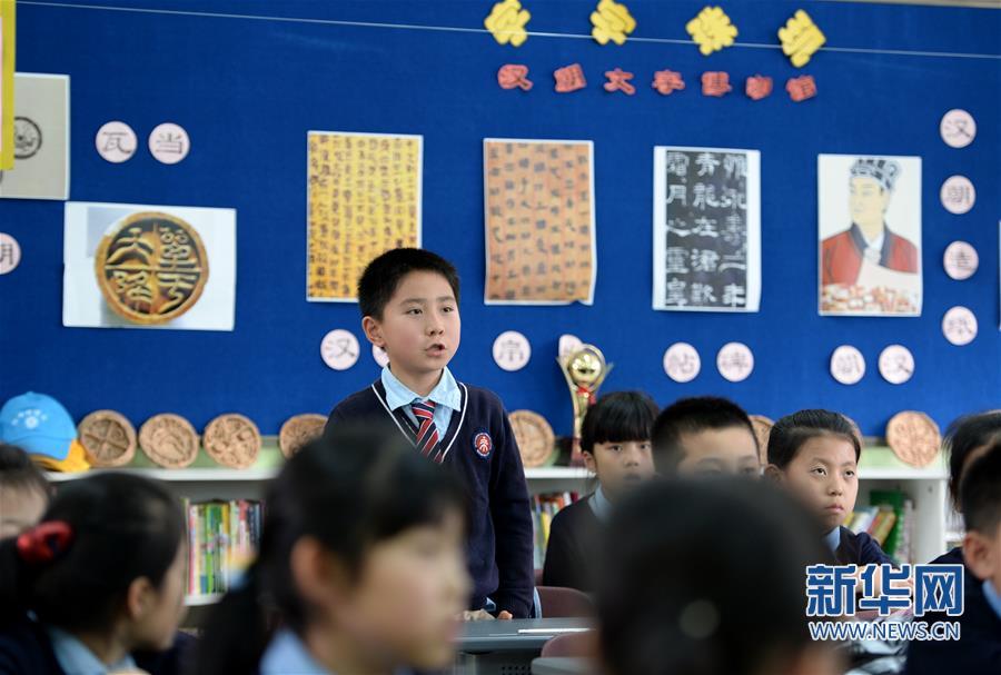 3月15日,西安市曲江第二小學(xué)學(xué)生在博物館課上回答問題。新華社記者 李一博 攝 -