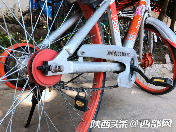 康師傅是附近工地的一名民工,他也給一輛摩拜單車上了私鎖并用于日常騎行。康師傅告訴記者,自己3天前在一家商店門口發(fā)現(xiàn)了一輛共享單車,為了圖方便,他就把自己箱子上的鎖拆了下來,裝在了共享單車上!拔乙膊粫䲣叨S碼,就上了一把鎖!笨祹煾党姓J(rèn),整個(gè)工地給共享單車上鎖的工友不在少數(shù)。