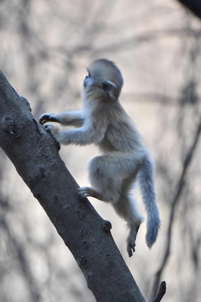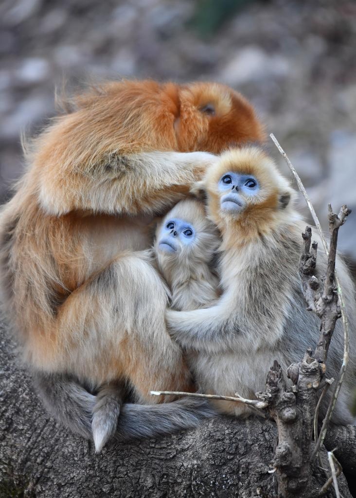 12月11日,在陜西周至國(guó)家級(jí)自然保護(hù)區(qū)玉皇廟金絲猴監(jiān)測(cè)基地,金絲猴嬰幼猴在活動(dòng)。新華社記者 邵瑞 攝