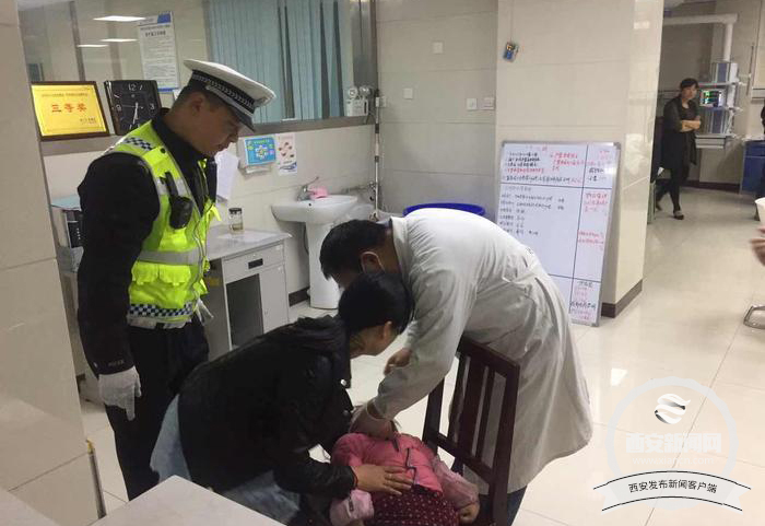 西安新聞網(wǎng)訊(文/圖西安晚報(bào)記者 袁玥)長安區(qū)郭杜街道做生意的湖南人袁某夫婦的3歲小女孩在家玩耍時(shí),不慎摔倒,后腦部受傷昏迷,送醫(yī)院途中又值交通晚高峰,車行緩慢,情急之中緊急求助,長安交警在街頭上演了一場(chǎng)愛心大營救。
