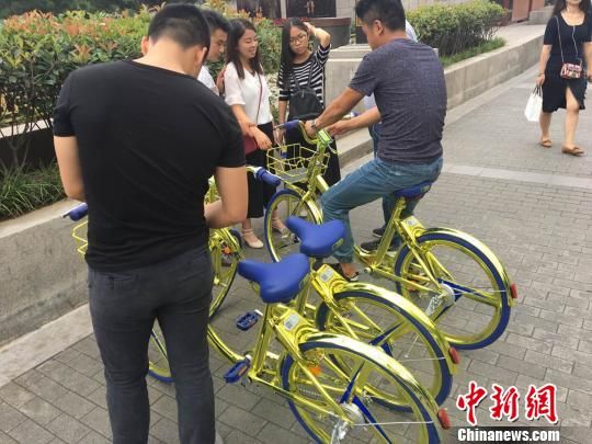 中新網(wǎng)陜西新聞6月8日電(阿琳娜 燕武)“土豪金”車身、寶藍(lán)色坐墊、可充電的手機(jī)支架……西安街頭8日出現(xiàn)“土豪金”版共享單車,不少朋友圈被刷屏的年輕人專程前往“嘗鮮”,體驗全新“黃金座駕”。
