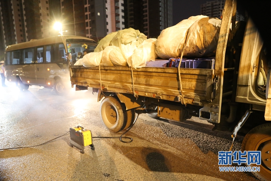 新華網(wǎng)西安6月26日電(賀鑫)“這些更新后的泔水車,全部是純電動(dòng)車型,零排放、零污染。以前那些在城市里拉著泔水的冒黑煙柴油貨車和三輪‘蹦蹦車’將一去不復(fù)返了。”西安交警曲江大隊(duì)民警何力超說(shuō),“泔水收集運(yùn)輸方式的改變,是解決低速高排貨車造成城市環(huán)境污染的有效可行方式。”啟用全新的純電動(dòng)泔水車,與傳統(tǒng)人力灌裝相比將更快捷、更高效、更環(huán)保,車輛統(tǒng)一標(biāo)識(shí),采用外殼封閉罐體,在運(yùn)輸過(guò)程中不僅杜絕了拋灑、外溢,而且單車載重量達(dá)到兩噸,遠(yuǎn)超過(guò)傳統(tǒng)泔水車運(yùn)量,減少了運(yùn)送趟次。6月19日晚,在西安市豐慶路與豐登路十字,陜西交警低速及載貨柴油汽車污染治理專項(xiàng)整治行動(dòng)現(xiàn)場(chǎng),民警正在查處冒黑煙的柴油低速貨車。 新華網(wǎng) 賀鑫 攝