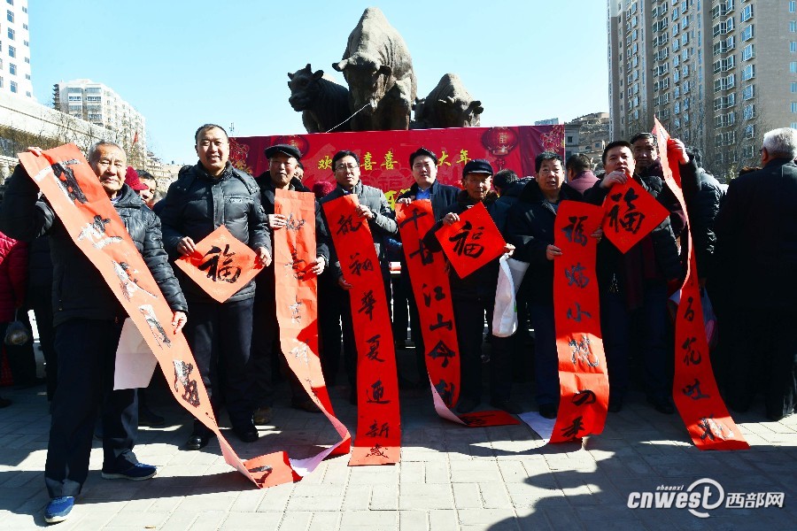 據(jù)悉,橫山縣文聯(lián)與書法家協(xié)會(huì)已經(jīng)連續(xù)八年臨年臘月走上街頭義務(wù)向市民書寫贈(zèng)送春聯(lián)與“!弊,這一活動(dòng)既滿足了市民對(duì)傳統(tǒng)春聯(lián)的需求,又促進(jìn)了書法這一傳承文化在民間的傳播與發(fā)揚(yáng)。