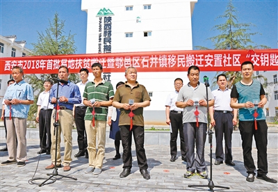 西安晚報訊(記者趙輝)“感謝黨和政府牽掛著我們這些貧困老百姓,這輩子咋也沒想到還能有一天住進樓房!5月15日上午,西安市2018年首批易地扶貧搬遷集中安置社區(qū)交鑰匙活動在鄠邑區(qū)石井鎮(zhèn)移民搬遷安置社區(qū)舉行,搬遷戶代表弋買道在發(fā)言時非常激動。而這次像他一樣拿上新房鑰匙的有220戶搬遷戶。