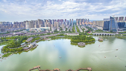 空氣良好時的西安曲江南湖 記者 劉強攝
