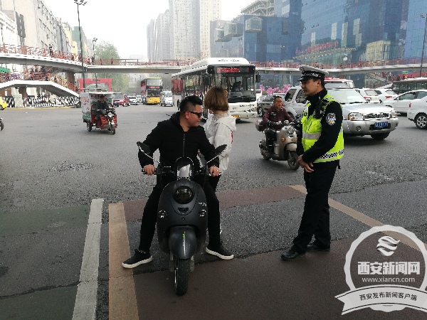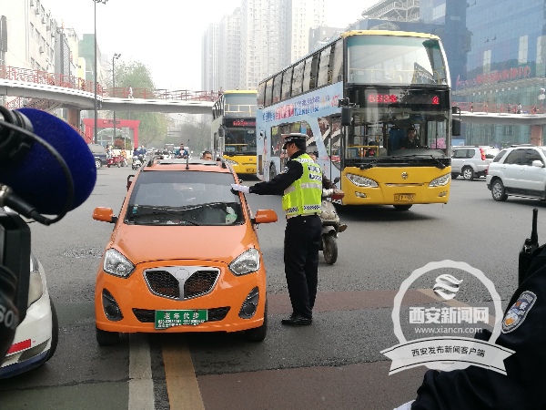 6號上午10點,記者來到小寨十字,十字西南角停放著10余輛兩輪車和3輛電動三輪車。雁塔大隊小寨中隊教導(dǎo)員賀向偉介紹,兩三輪車闖紅燈、走機動車道、穿插行駛等違法行為十分普遍,這些車大多數(shù)都是無牌照、無手續(xù)、非法運營。說話間,一輛橙色的老年代步車在機動車道從北向南駛來,并且沒有懸掛號牌,賀向偉將其攔下。面對查處,這名50多歲的駕駛?cè)吮硎竞堋霸,“買的時候商家說沒問題,沒想到過不去交警這關(guān)!倍宜沒有駕駛證。
