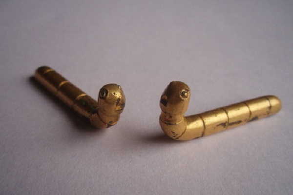 記者從陜西歷史博物館了解到,習(xí)近平主席提及的鎏金銅蠶1984年出土于陜西省石泉縣,通長5.6厘米,胸圍1.9厘米,胸高1.8厘米,全身首尾共計(jì)9個腹節(jié),胸腳、腹腳、尾腳均完整,體態(tài)為仰頭或吐絲狀,制作精致,造型逼真,專家鑒定為漢代鎏金銅蠶。鎏金銅蠶的出土,將陜西石泉縣這一養(yǎng)蠶圣地的養(yǎng)蠶歷史推前到漢代。