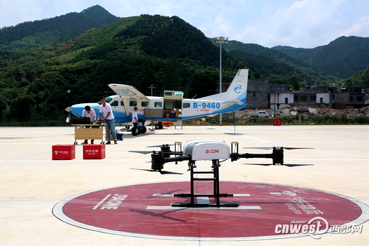 京東三級航空智慧物流體系飛行驗證的成功,首開通航飛機(jī)短途貨物運(yùn)輸?shù)臍v史先河,創(chuàng)新無人機(jī)物流協(xié)同運(yùn)輸?shù)牧己镁置,深化民航試點(diǎn)工作的階段成果。尤其是它與無人機(jī)協(xié)同運(yùn)輸,更是在多式聯(lián)運(yùn)的模式創(chuàng)新上,在航空貨運(yùn)史上都是一次創(chuàng)舉。6月18日,丹鳳機(jī)場與京東簽署合作協(xié)議,機(jī)場和中飛通用航空將協(xié)助提供優(yōu)質(zhì)的機(jī)場和航空服務(wù),推動陜西乃至西北地區(qū)的通用航空機(jī)場網(wǎng)絡(luò)布局,支持京東三級航空智慧物流體系建設(shè)。
