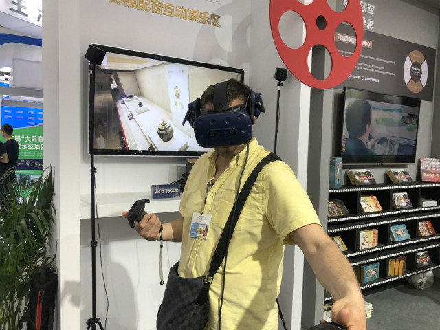 李斌:"我們這邊參展的是互聯(lián)網(wǎng)+文物教育平臺,主要通過AR、VR等形式,讓文物'活'起來。因為本來這個東西都是冷冰冰的東西,大家沒有興趣,而通過這個東西,讓文物背后的故事說話。"