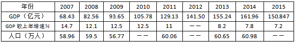 ◎西安市戶縣(鄠邑區(qū))2007年-2015年GDP值、GDP增速、人口數(shù)量整體呈增長(zhǎng)趨勢(shì),數(shù)據(jù)來(lái)源于戶縣人民政府網(wǎng),制表 舒隆煥