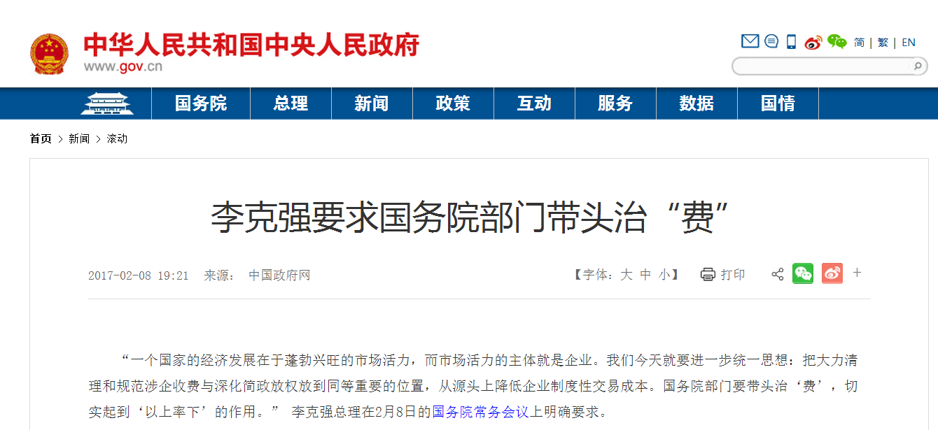 “現(xiàn)在許多企業(yè)呼聲最普遍的一個(gè)問題,就是各種‘費(fèi)’不僅項(xiàng)目繁多,而且征收不規(guī)范! 李克強(qiáng)總理在近日國務(wù)院常務(wù)會(huì)議上強(qiáng)調(diào),國務(wù)院部門要帶頭治“費(fèi)”,抓緊清理,到今年年底讓市場(chǎng)主體切實(shí)感受到清費(fèi)成效!