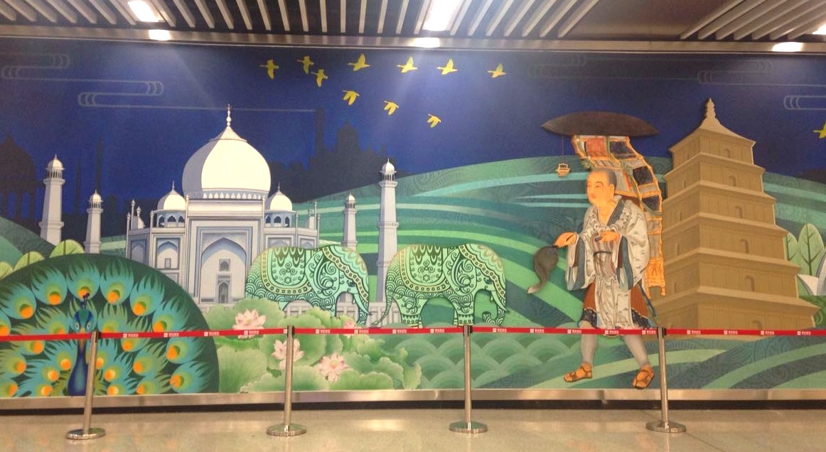 西安地鐵三號線文化墻出現(xiàn)“玄奘與泰姬陵穿越千年被同框”、多處世界著名城市地理位置標注錯誤,引來外地游客、西安市民質(zhì)疑,西北大學玄奘研究院院長李利安教授指出,西安地鐵三號線文化墻的《天竺佛光》中玄奘服裝、佩帶物等不符合佛教規(guī)定。