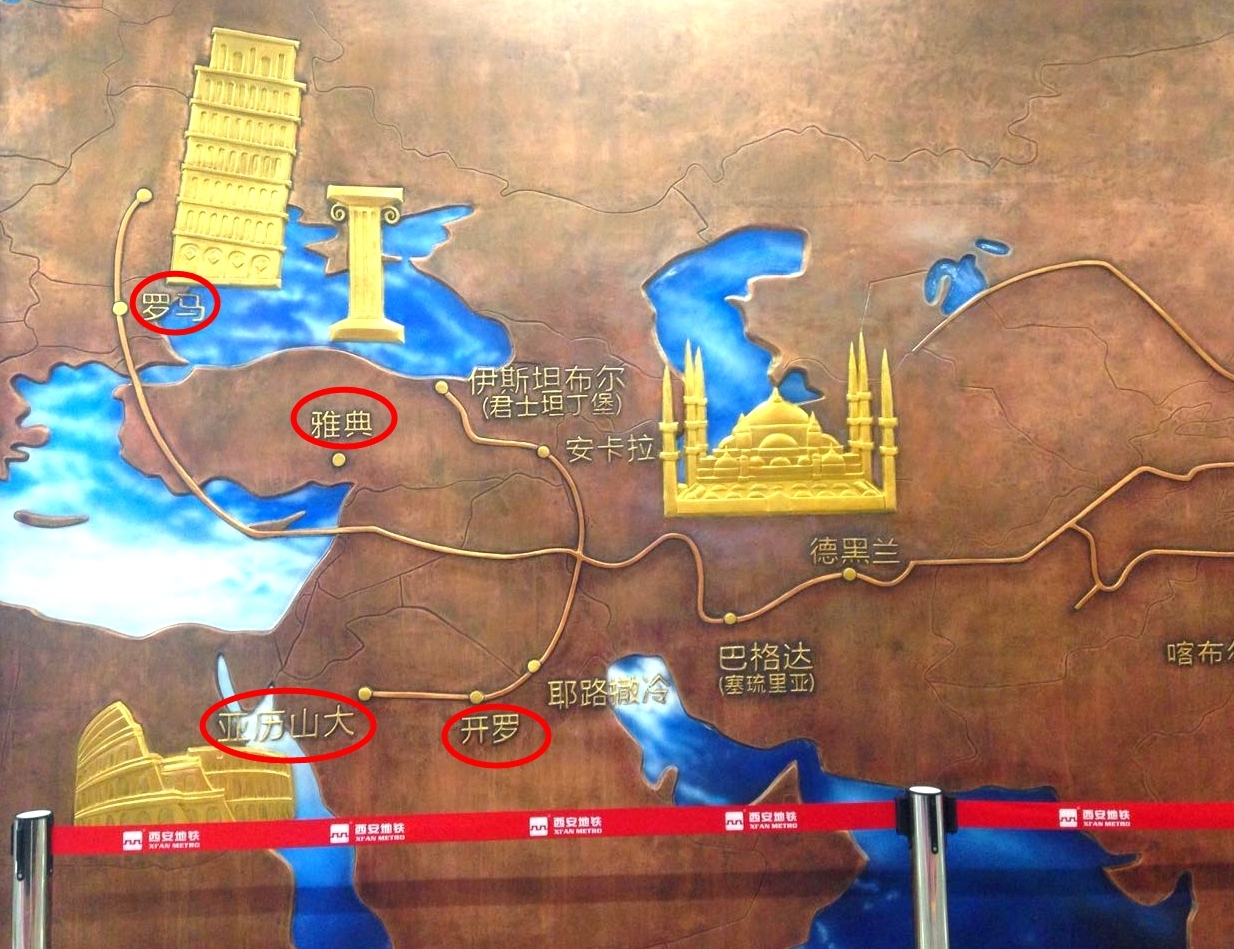 圖中羅馬、雅典、亞歷山大、開羅地理位置均有明顯錯誤 圖片來自大秦之聲
