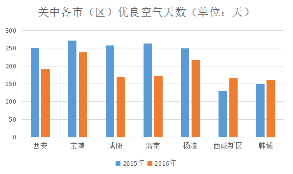 2016年關中多地優(yōu)良空氣天數(shù)下降 (數(shù)據(jù)來源于陜西省環(huán)保廳)
