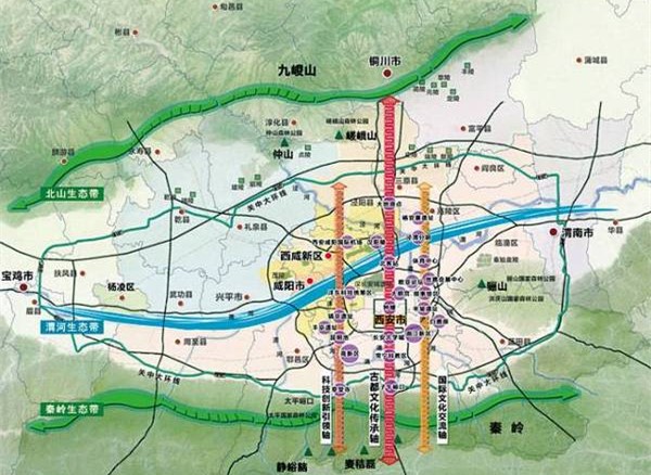 “三條軸線”大西安空間布局,圖片來源于網絡