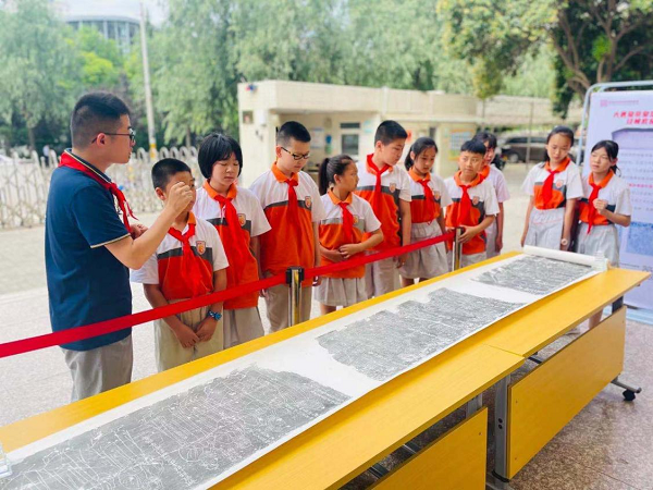 活動現(xiàn)場,學生們近距離觀看文物拓。ㄑ霃V網(wǎng)發(fā) 高新區(qū)供圖)