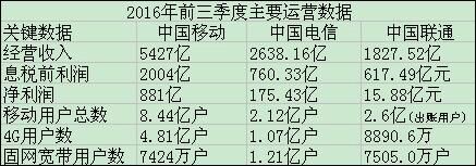 三大運營商前三季度財報一覽:4G用戶移動獨占70%以上