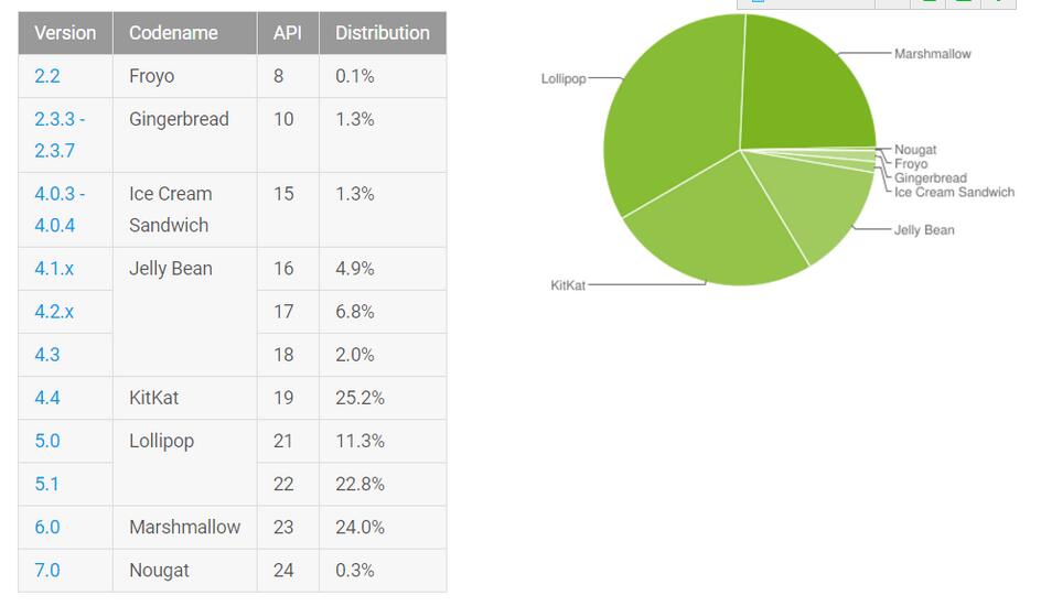 Android 7.0發(fā)布已兩個(gè)月 市場份額僅0.3%