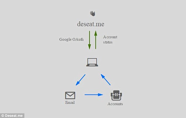 該網(wǎng)站稱,可以列出你創(chuàng)建過的所有賬戶,將這些賬戶與相應(yīng)的網(wǎng)頁建立鏈接,指導(dǎo)你永久性地刪除這些賬戶信息。你只需要為網(wǎng)站提供你所希望刪除的賬戶,Deseat.me就可以幫你實現(xiàn)。 該網(wǎng)站還表示,雖然使用了谷歌的開放授權(quán)協(xié)議,但是并沒有權(quán)限獲取用戶登錄信息。