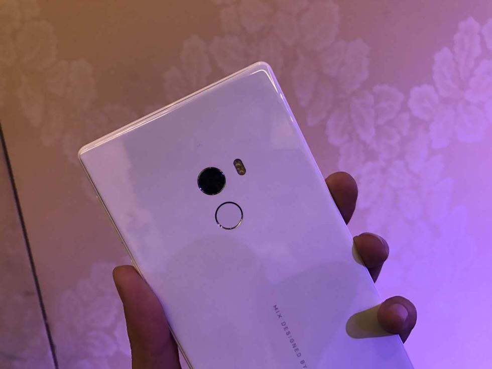 白色版MIX同樣采用了陶瓷作為機身材質(zhì),背面指紋識別模塊的外圈和低配版黑色MIX一樣采用銀色外圈裝飾。 -