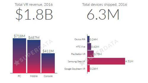 2月6日消息,市場(chǎng)研究分析機(jī)構(gòu)SuperData近期聯(lián)合開發(fā)平臺(tái)Unity發(fā)布了一份關(guān)于2016年虛擬現(xiàn)實(shí)市場(chǎng)的報(bào)告。報(bào)告中指出,虛擬現(xiàn)實(shí)市場(chǎng)在2016年總產(chǎn)值高達(dá)18億美元,而VR頭顯設(shè)備的總銷量達(dá)到630萬臺(tái)。其中,各個(gè)VR廠商表現(xiàn)各有不同。