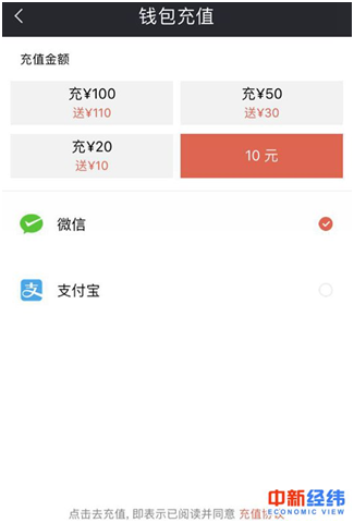中新經(jīng)緯客戶(hù)端(微信公眾號(hào):jwview)在摩拜APP充值頁(yè)面進(jìn)行親測(cè),但并未找到無(wú)所謂的“1元起充”入口,頁(yè)面設(shè)置充值金額分別為10元、20元、50元和100元。