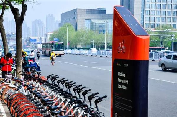 據(jù)悉,摩拜智能推薦停車點(diǎn)主要由智能停車樁和地面圍欄線所劃出的區(qū)域組成,延用了“摩拜橙”與“摩拜黑”雙色相結(jié)合的設(shè)計(jì),內(nèi)含科技元素——一體化的太陽(yáng)能供電系統(tǒng)能夠提供持久而穩(wěn)定的零污染能源。