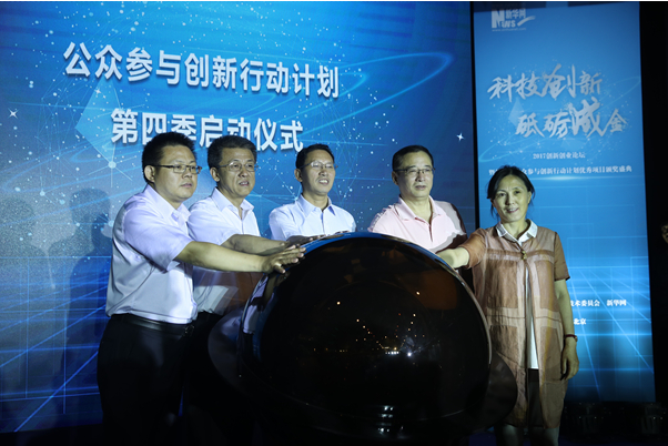 北京市科委副主任伍建民(中)等嘉賓啟動公眾參與創(chuàng)新行動計劃第四季活動 圖來自新華網(wǎng)