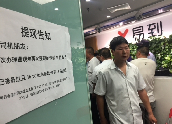 今年4月易到出現(xiàn)提現(xiàn)困難的情況后,易到承諾,愿意選擇線下提現(xiàn)的司機在公司登記后,16個自然日后賬戶金額將直接打到司機的銀行卡上,但很多司機到期后并未收到款項,所以只能選擇到公司要賬。