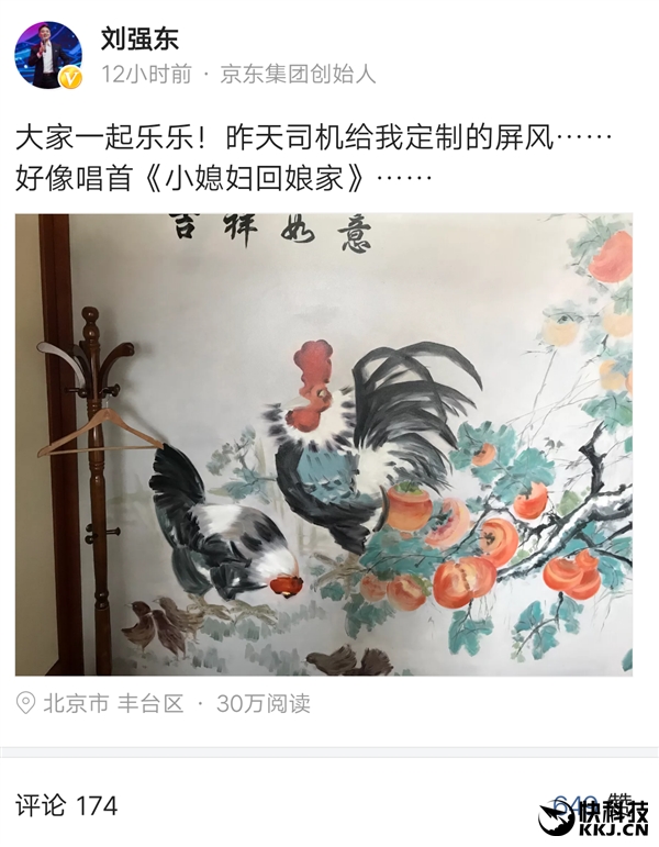 今天上午,東哥在微頭條分享最新動態(tài),這是“昨天司機給我定制的屏風……好像唱首《小媳婦回娘家》……”