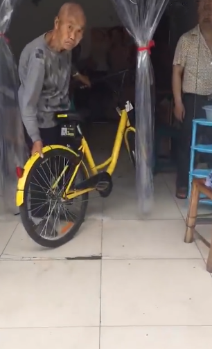 據(jù)半島都市報報道,近日,四川成都一女子解鎖了一輛共享單車,但是卻被一位老大爺搶走并拿回家里:“停我家門口就是我的!