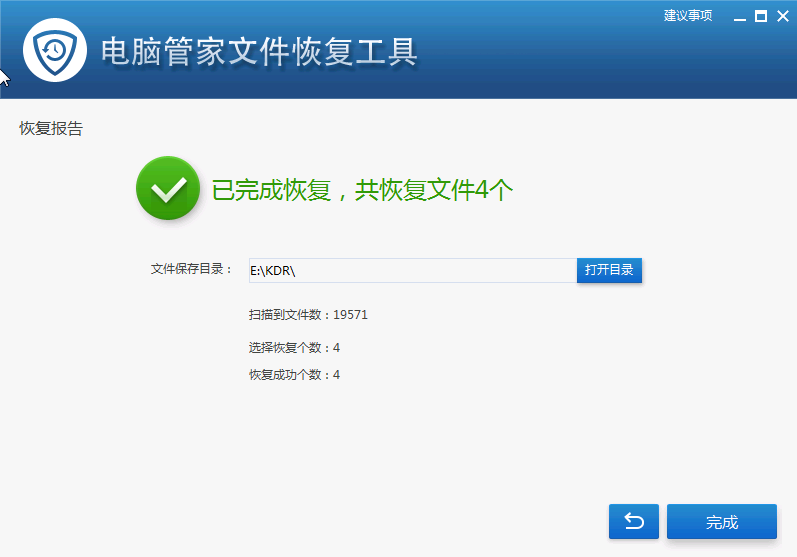 6、恢復(fù)成功。你可以點(diǎn)擊“打開目錄”查看恢復(fù)的文件了