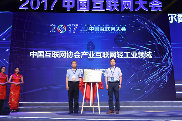中國(guó)互聯(lián)網(wǎng)協(xié)會(huì)秘書(shū)長(zhǎng)盧衛(wèi)與海爾互聯(lián)工廠項(xiàng)目總監(jiān)王勇為“產(chǎn)業(yè)互聯(lián)網(wǎng)輕工業(yè)領(lǐng)域海爾數(shù)字科技實(shí)驗(yàn)室”揭牌