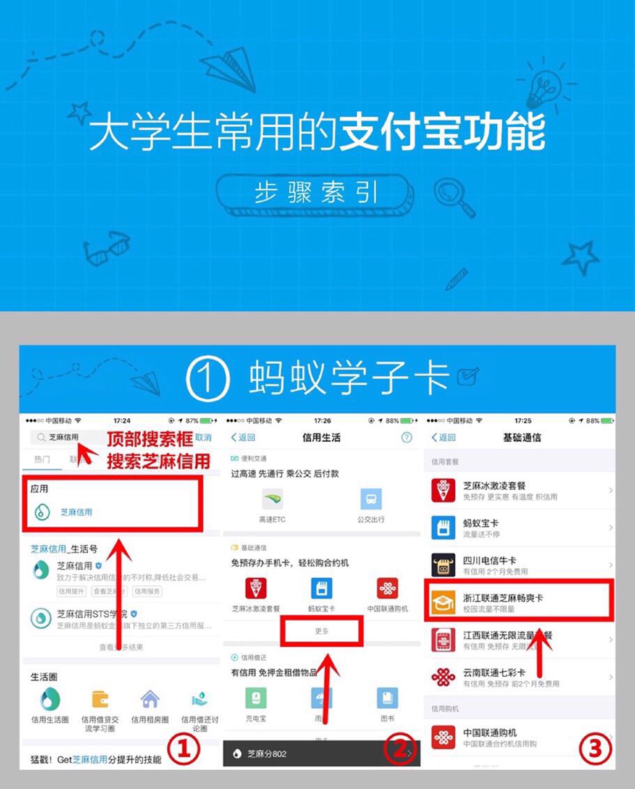 步驟:支付寶搜索芝麻信用-信用生活-螞蟻學(xué)子卡。