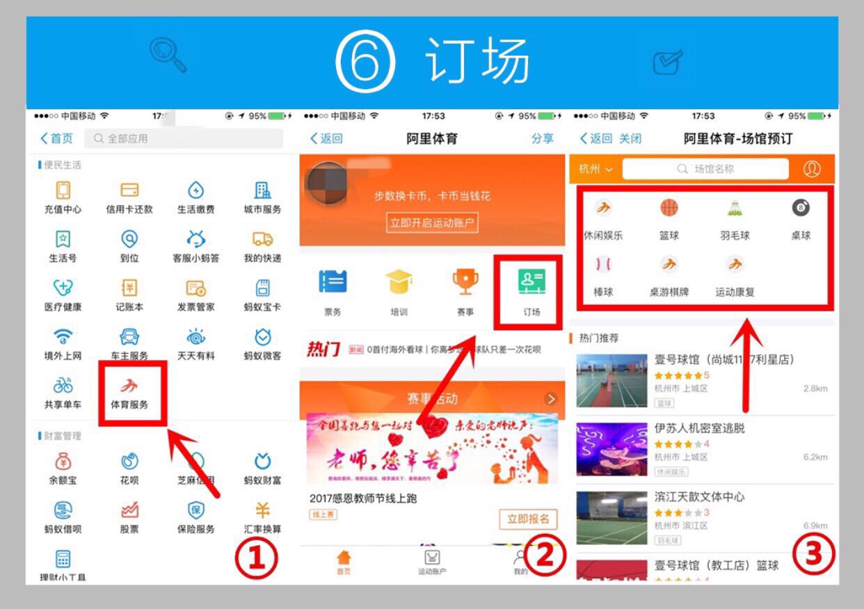 步驟:支付寶-體育服務(wù)-訂場(chǎng)