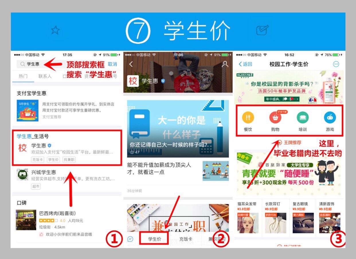步驟:支付寶-學(xué)生工作-學(xué)生價(jià)