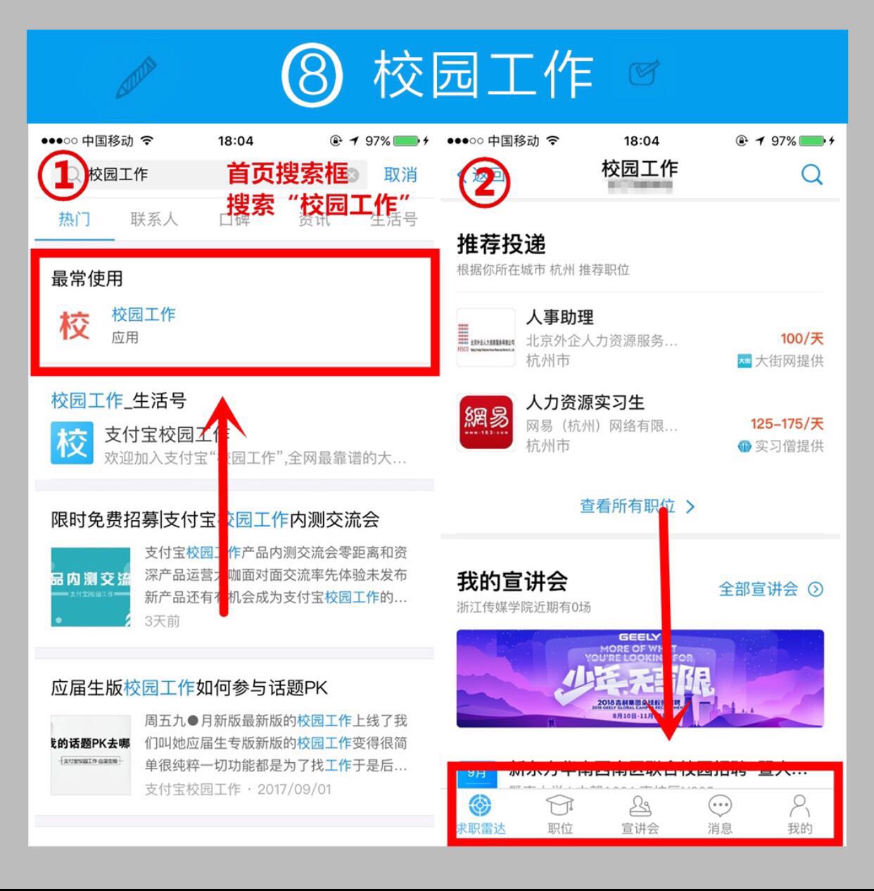 步驟:支付寶-校園工作