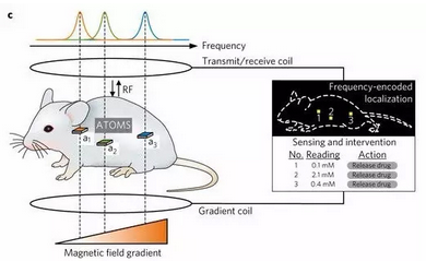 Shapiro 博士提到的 ATOMS 芯片正是他們開發(fā)出的“治療潛水艇”,它只有一枚硬幣的 250 分之一大。在一定的磁場(chǎng)梯度下,它們也能以不同的頻率共振,讓人分析出這些小芯片的位置。這打通了前往未來(lái)的道路。
