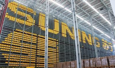 他們可以24小時不間斷分揀,每小時可完成18000件分揀。而且占地面積小,可減少70%人工。申通也在山東、浙江、天津多地上線“小黃人”倉庫,為天貓雙11物流加速。