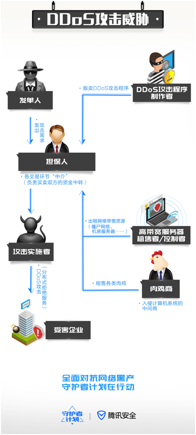 圖為DDoS攻擊黑色產(chǎn)業(yè)鏈