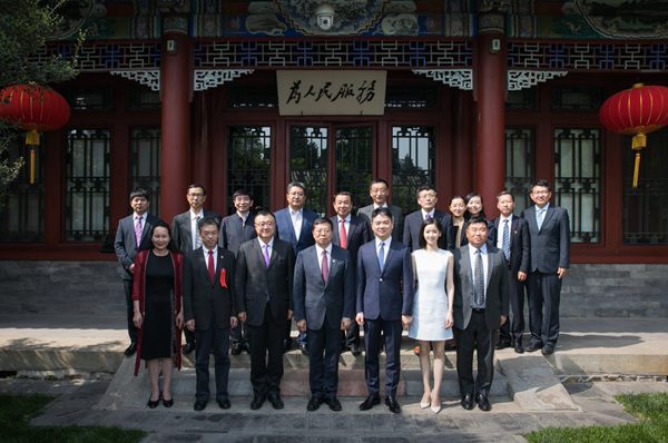 戰(zhàn)略合作協(xié)議及捐贈協(xié)議簽署后,清華大學(xué)校長邱勇(前排左四)、清華大學(xué)副校長楊斌(前排左三)與劉強東(前排左五)、京東公益基金會榮譽理事長章澤天(前排左六)、京東集團執(zhí)行副總裁兼首席公共事務(wù)官藍燁、京東集團副總裁、黨委書記龍寶正等合影留念