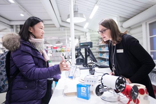 圖說:中國(guó)游客在芬蘭商店使用支付寶付款
