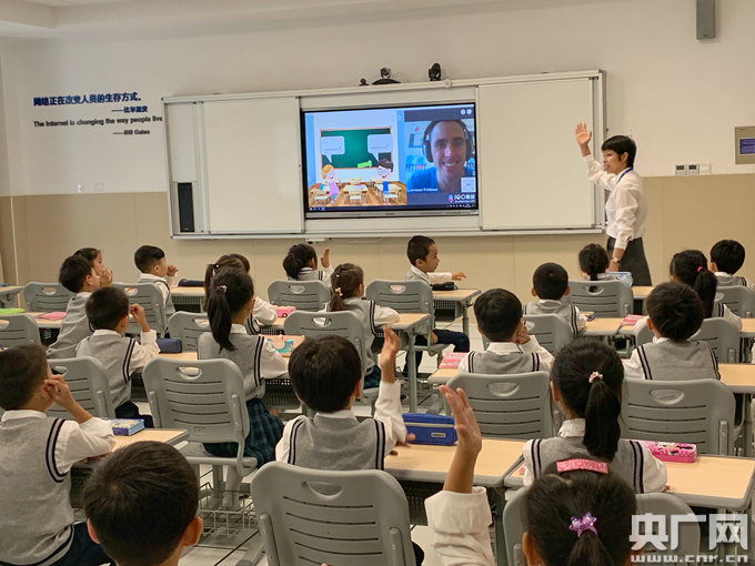 在學(xué)校的遠(yuǎn)程課堂上,黑板上的屏幕將大洋彼岸的外教老師帶到了孩子們面前,孩子們與老師熱情互動(dòng),紛紛到講臺(tái)前進(jìn)行英文對(duì)話展示。樂(lè)高機(jī)器人教室里,一年級(jí)的孩子們則互相合作,手拿樂(lè)高,認(rèn)真地進(jìn)行智能拼搭、編程及程序控制等課程實(shí)踐。學(xué)校相關(guān)負(fù)責(zé)人向記者表示,通過(guò)智慧化的學(xué)習(xí)設(shè)施,孩子們的學(xué)習(xí)興趣更濃了,學(xué)習(xí)效果也更好。